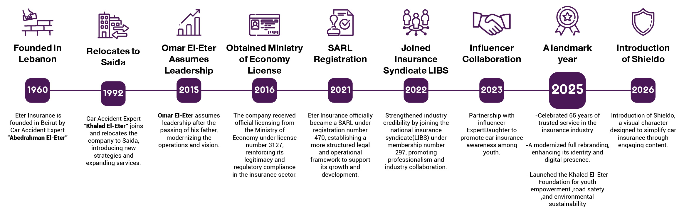 By 2015, the third generation — Mr. Omar El-Eter — stepped into leadership, continuing the legacy of his father and grandfather. With a modern vision and deep respect for the company’s heritage, he led Eter Insurance Broker Co. into a new era focused on sustainable growth, innovation, and long-term impact.